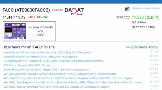 FACC am 23.1. 2,30%, Volumen 162% normaler Tage