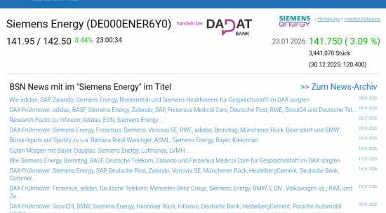 Siemens Energy am 23.1. 3,09%, Volumen 154% normaler Tage