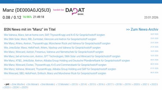 Manz am 23.1. -5,92%, Volumen 0% normaler Tage