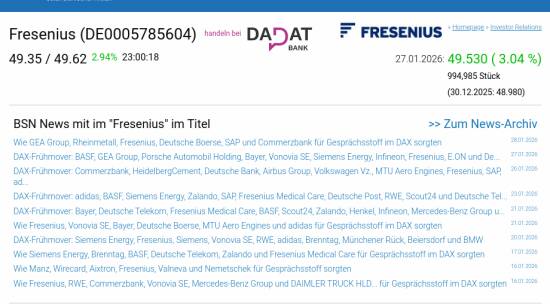 Fresenius am 27.1. 3,04%, Volumen 123% normaler Tage