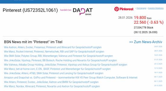 Pinterest am 28.1. -3,63%, Volumen 198% normaler Tage