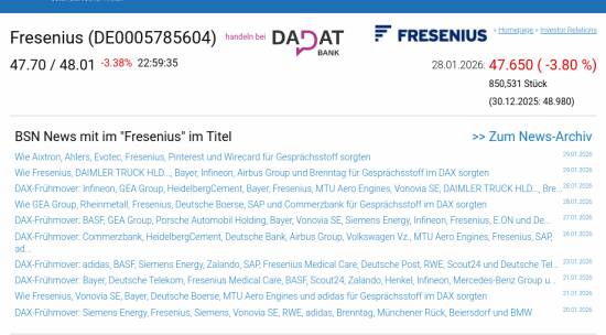 Fresenius am 28.1. -3,80%, Volumen 105% normaler Tage