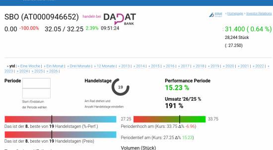 >> Aus dem Artikel: ATX TR-Frühmover: SBO, RBI, EVN, AT&S, CA Immo, OMV, DO&CO, Wienerberger, Lenzing und Bawag