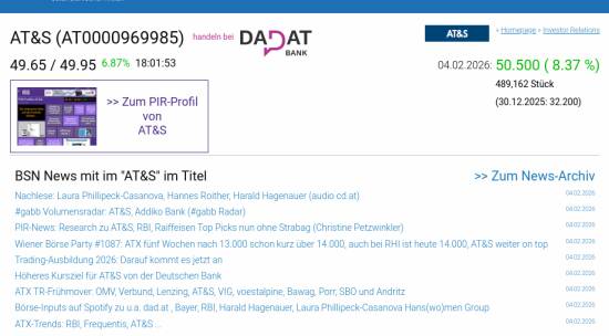 AT&S am 4.2. 8,37%, Volumen 302% normaler Tage