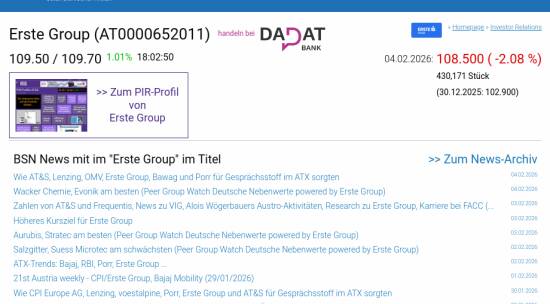 Erste Group am 4.2. -2,08%, Volumen 123% normaler Tage