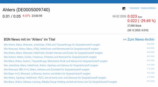 Ahlers am 4.2. -29,69%, Volumen 377% normaler Tage