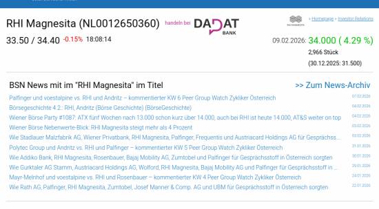 RHI Magnesita am 9.2. 4,29%, Volumen 101% normaler Tage