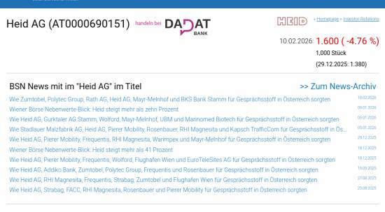 Heid AG am 10.2. -4,76%, Volumen 125% normaler Tage