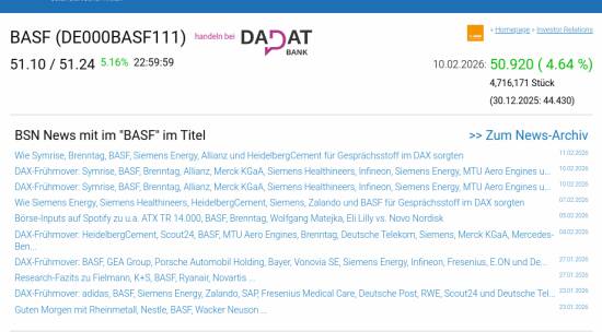 BASF am 10.2. 4,64%, Volumen 177% normaler Tage