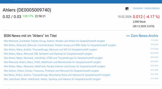Ahlers am 10.2. -4,17%, Volumen 39% normaler Tage