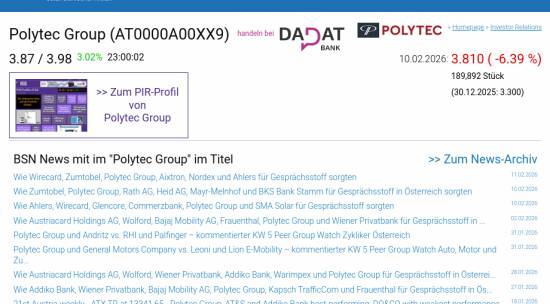 Polytec Group am 10.2. -6,39%, Volumen 531% normaler Tage