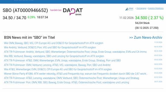 SBO am 11.2. 2,37%, Volumen 83% normaler Tage