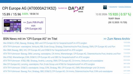 CPI Europe AG am 12.2. 0,57%, Volumen 55% normaler Tage