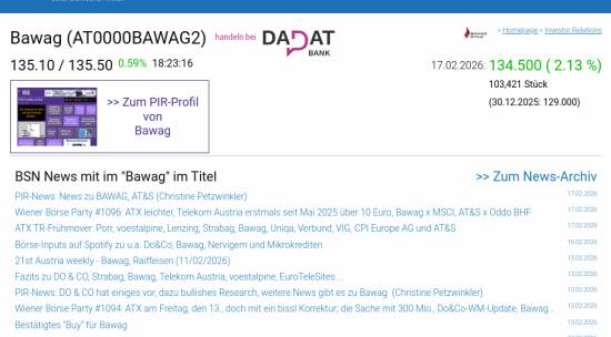 Bawag am 17.2. 2,13%, Volumen 78% normaler Tage