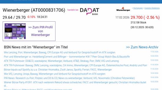 Wienerberger am 17.2. -2,56%, Volumen 90% normaler Tage