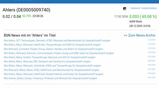 Ahlers am 17.2. 65,00%, Volumen 72% normaler Tage