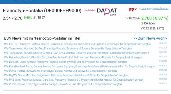 Francotyp-Postalia am 17.2. 8,87%, Volumen 228% normaler Tage
