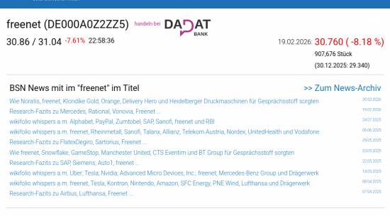 freenet am 19.2. -8,18%, Volumen 276% normaler Tage