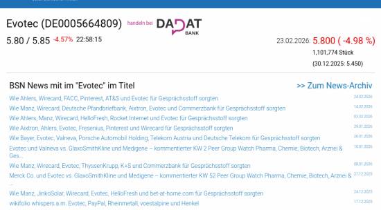 Evotec am 23.2. -4,98%, Volumen 153% normaler Tage