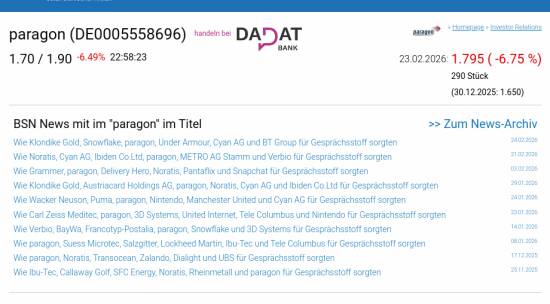 paragon am 23.2. -6,75%, Volumen 8% normaler Tage