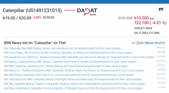 Caterpillar am 3.3. -4,01%, Volumen 114% normaler Tage