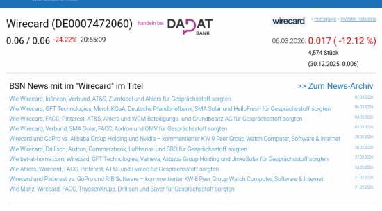 Wirecard am 6.3. -12,12%, Volumen 2% normaler Tage