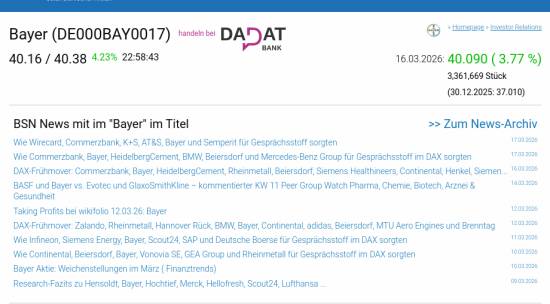 Bayer am 16.3. 3,77%, Volumen 83% normaler Tage