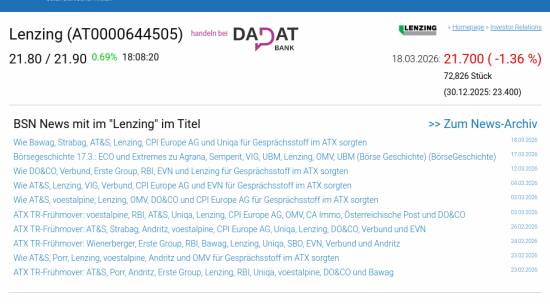 Lenzing am 18.3. -1,36%, Volumen 109% normaler Tage