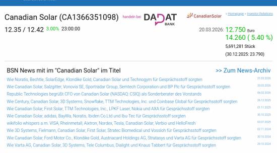 Canadian Solar am 20.3. 5,40%, Volumen 188% normaler Tage