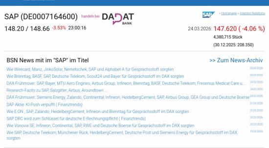 SAP am 24.3. -4,06%, Volumen 136% normaler Tage