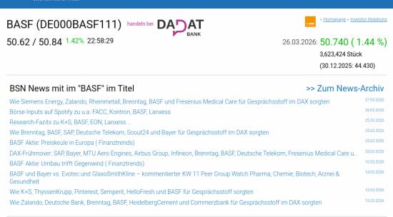 BASF am 26.3. 1,44%, Volumen 118% normaler Tage