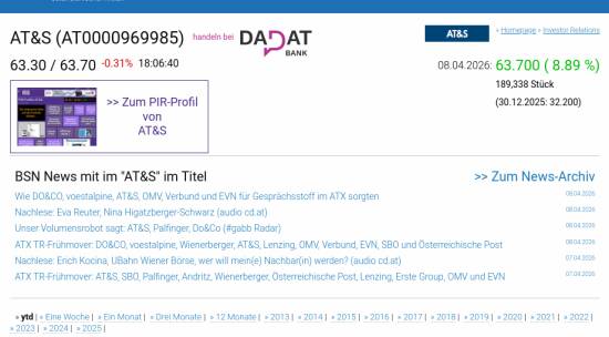 AT&S am 8.4. 8,89%, Volumen 126% normaler Tage