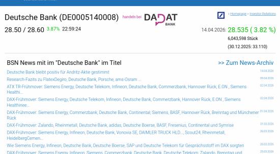 Deutsche Bank am 14.4. 3,82%, Volumen 87% normaler Tage