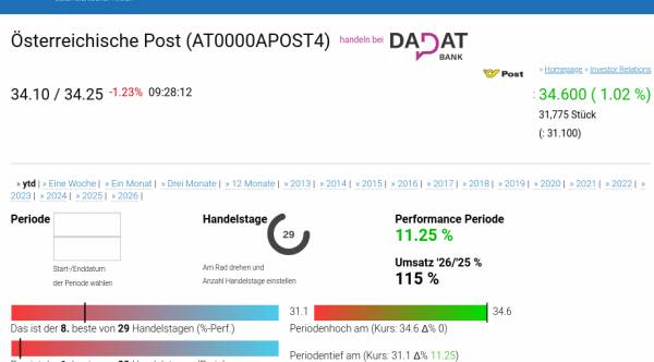 | Österreichische Post | POST | 34.60 (11.02.) |