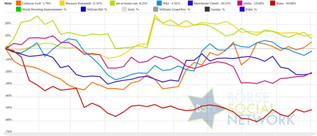 Puma -51,6% (Vorjahr: -12,19 Prozent) im Minus. Dahinter