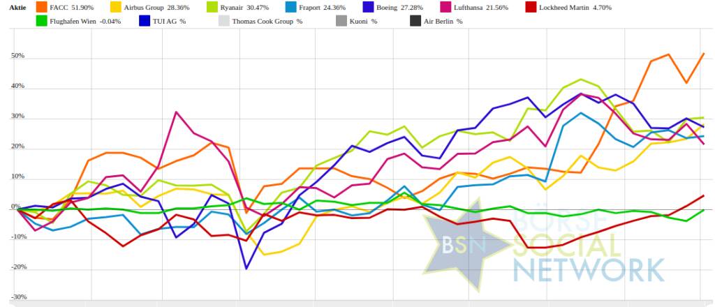 BSN Group Luftfahrt & Reise Performancevergleich YTD, Stand: 04.10.2025