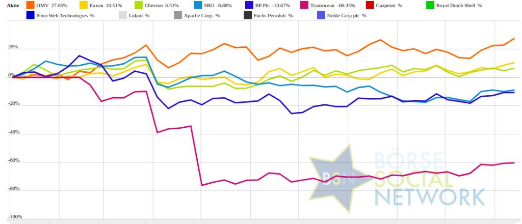 OMV 32,51% (Vorjahr: -6,11 Prozent) im Plus. Dahinter