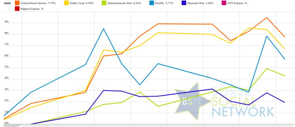 United Parcel Service 7,3% (Vorjahr: -20,98 Prozent) im Plus. Dahinter