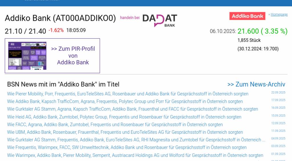 Addiko Bank am 6.10. 3,35%, Volumen 86% normaler Tage
