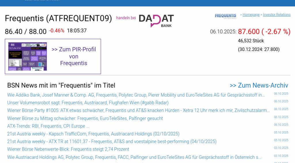 Frequentis am 6.10. -2,67%, Volumen 641% normaler Tage