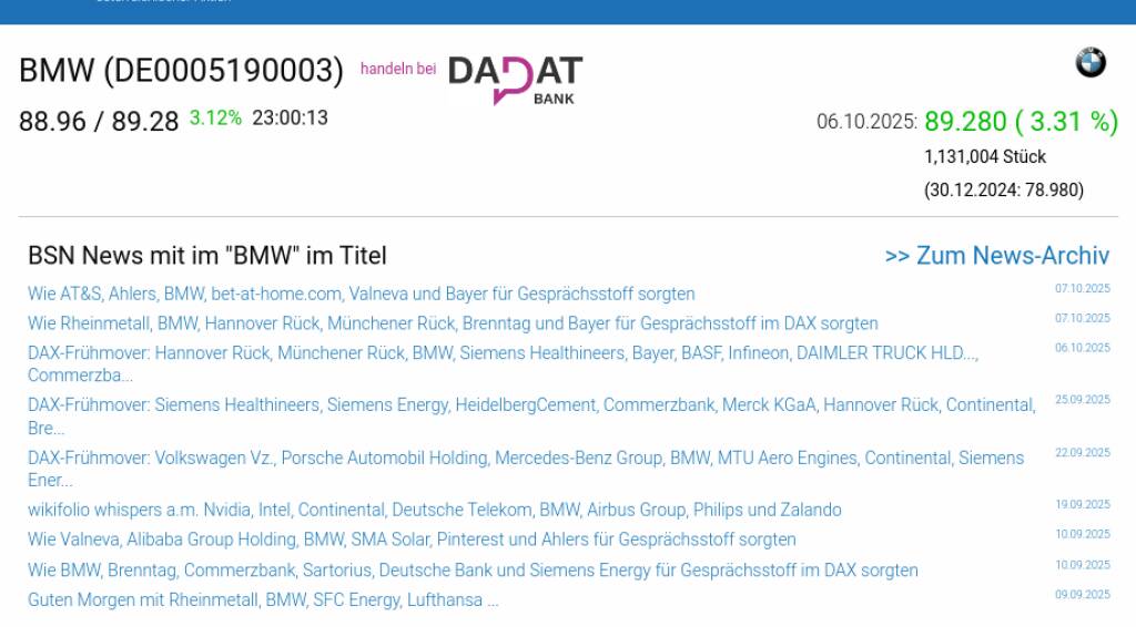 BMW am 6.10. 3,31%, Volumen 93% normaler Tage