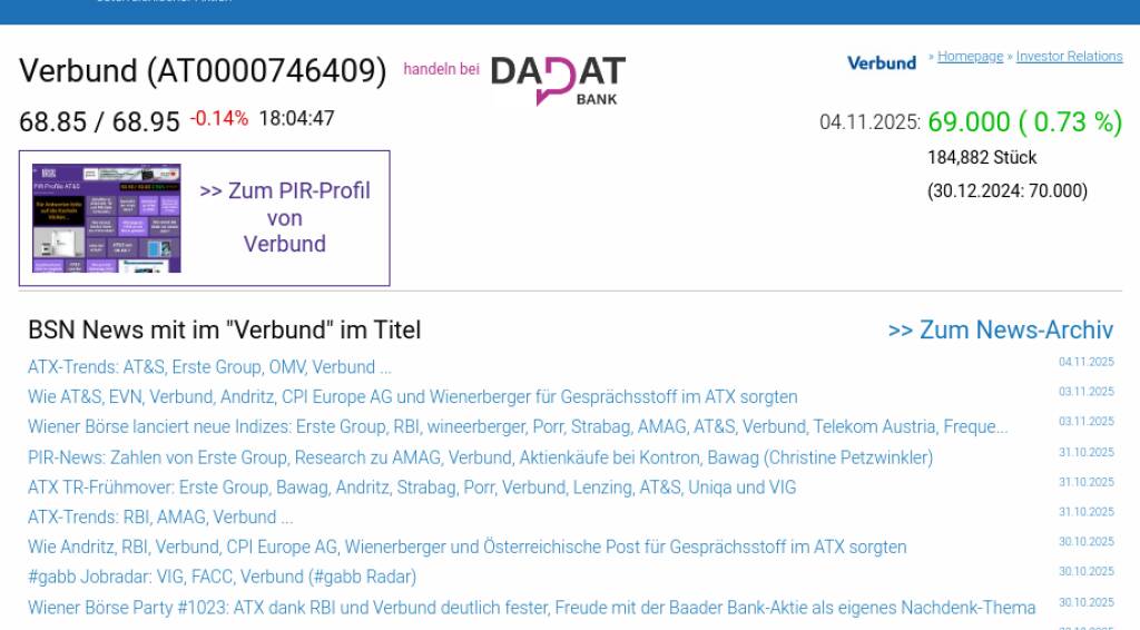 Verbund am 4.11. 0,73%, Volumen 147% normaler Tage