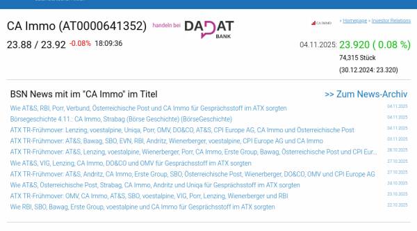 CA Immo am 4.11. 0,08%, Volumen 98% normaler Tage