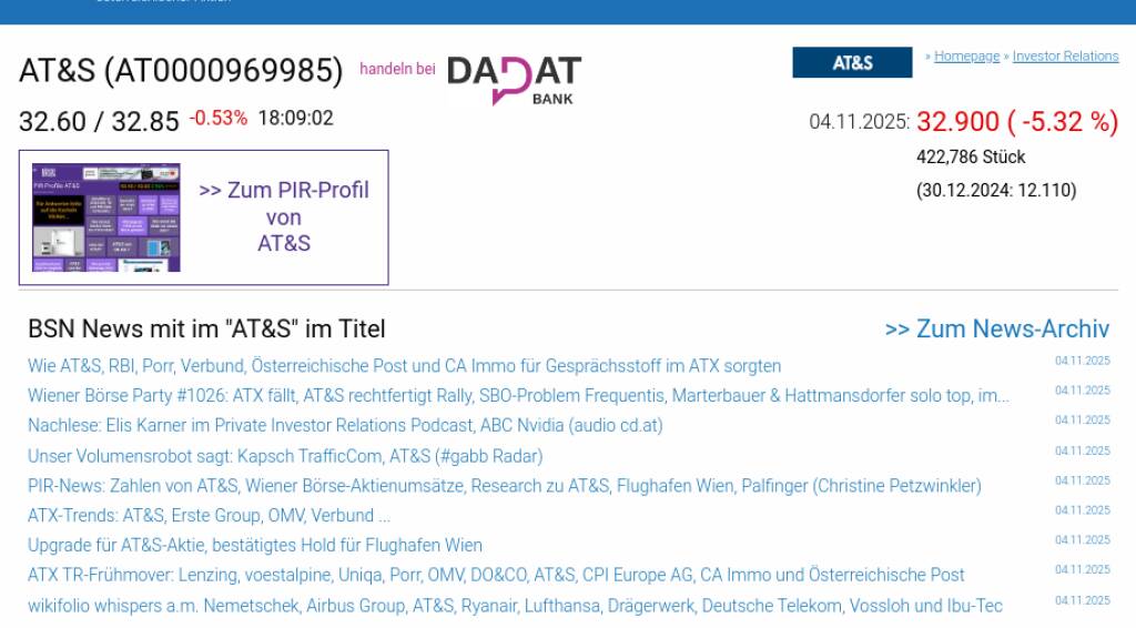 AT&S am 4.11. -5,32%, Volumen 325% normaler Tage