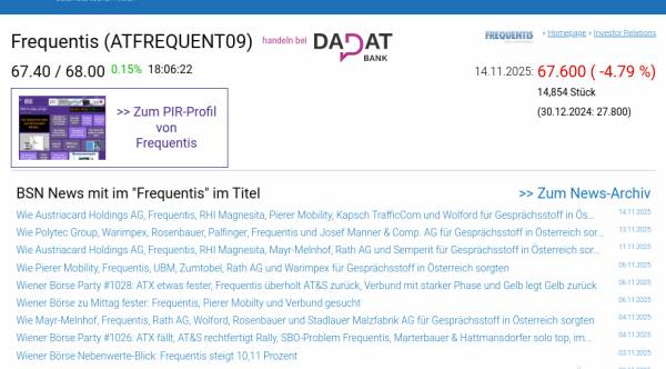 Frequentis am 14.11. -4,79%, Volumen 200% normaler Tage