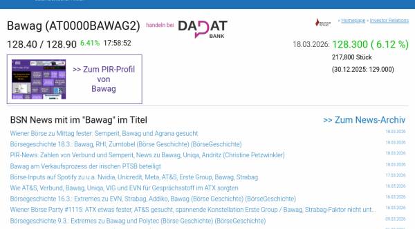 Bawag am 18.3. 6,12%, Volumen 96% normaler Tage