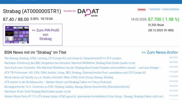 Strabag am 18.3. 1,98%, Volumen 72% normaler Tage