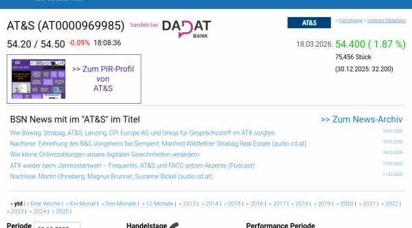 AT&S am 18.3. 1,87%, Volumen 52% normaler Tage