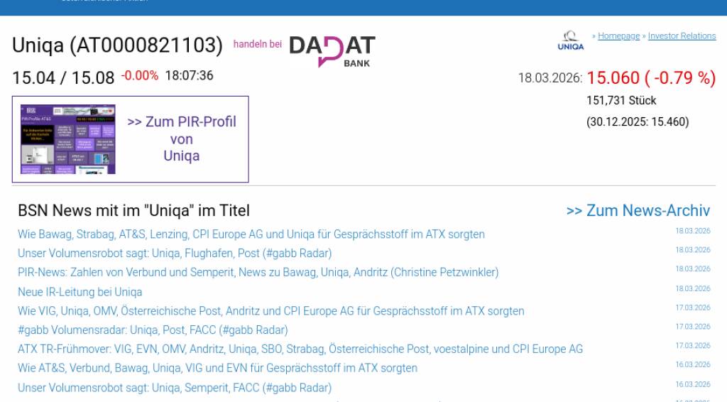 Uniqa am 18.3. -0,79%, Volumen 98% normaler Tage