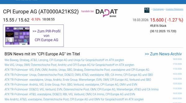 CPI Europe AG am 18.3. -1,27%, Volumen 137% normaler Tage
